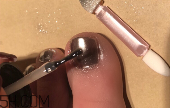 Step6:最后,為指甲刷上一層封層甲油,照燈60秒,我們一款簡單又個性的鏡面美甲就完成啦!