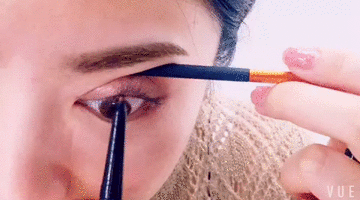 如果害怕用手指翻會蹭花眼影的話,我們可以用化妝刷來支撐,請一定要注意安全,不要自戳雙目哦~