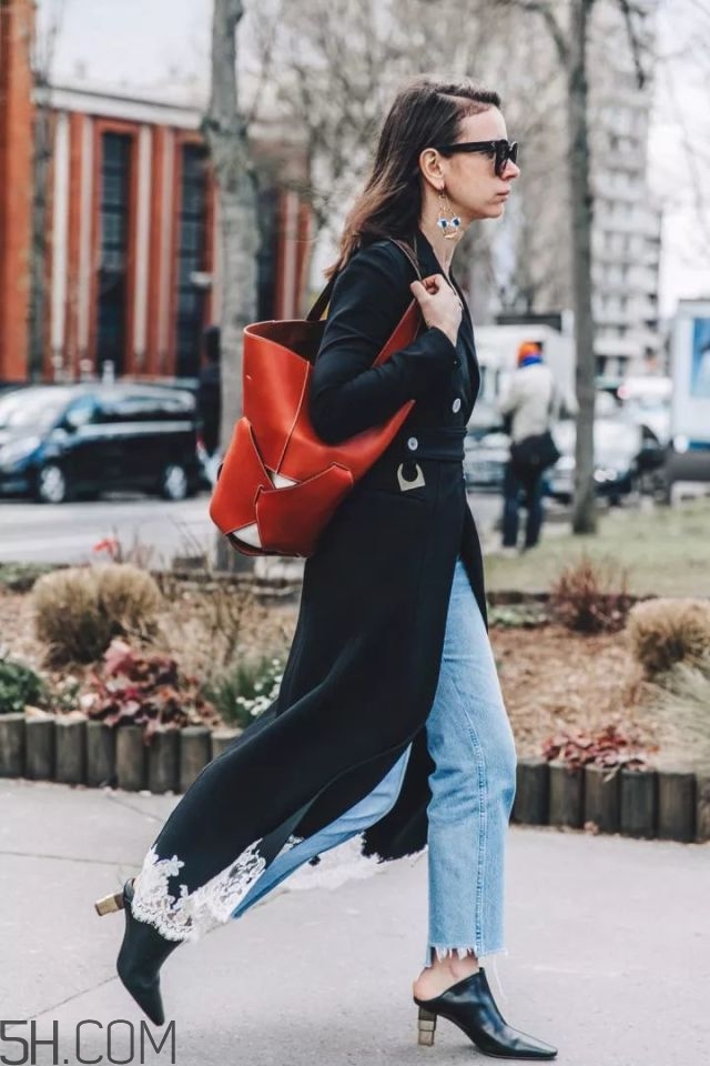 黑色太百搭了,大部分人都穿過牛仔褲+黑大衣。但牛仔褲的選擇也有講究。復(fù)古的,褪色的,粗狂的牛仔褲今年比較受歡迎。