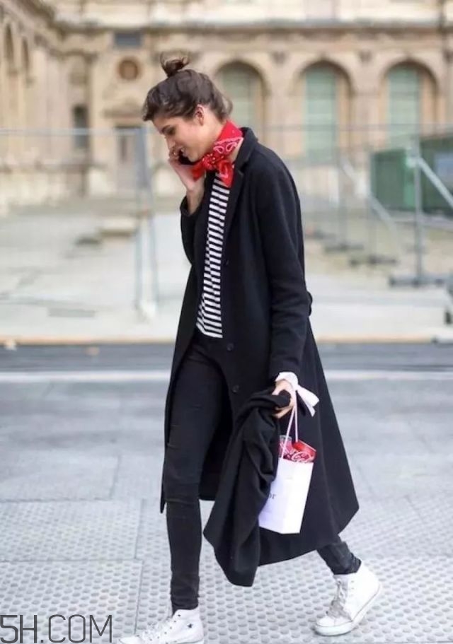 特別版:如果覺得ALL Black太單調(diào),可以搭配一些其他顏色的單品,比如絲巾,帽子,但這些面積都比較小,看起來不影響全身黑的效果。