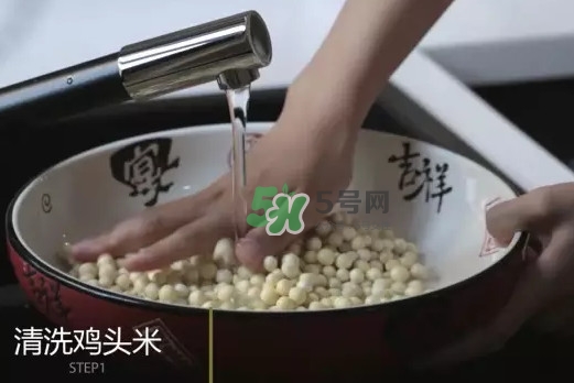 2. 起鍋下水燒開(kāi)后放入雞頭米,兩分鐘后撈起待用。