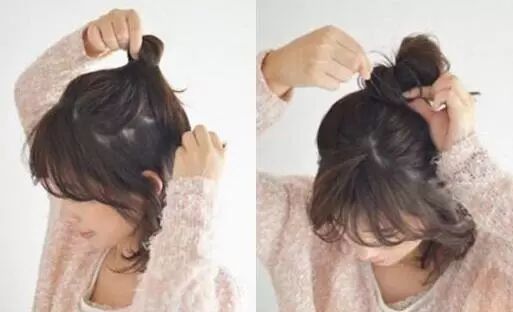 Step 2:把頭發(fā)扎起來(lái)綁個(gè)丸子頭。