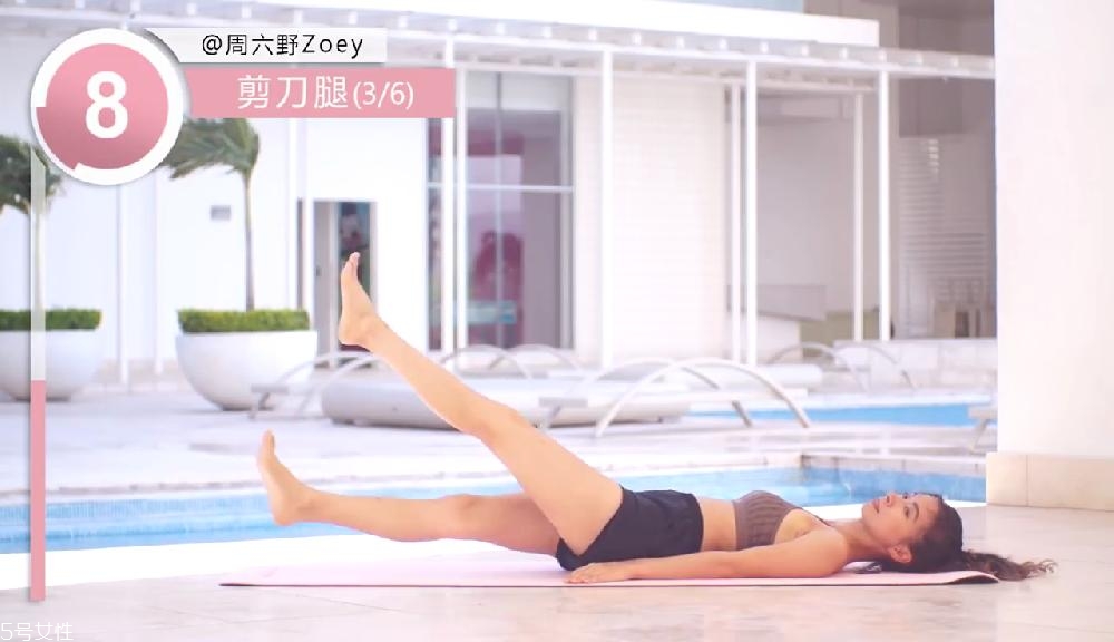 躺在地上,雙腿在半空伸直,上下交錯,擺動30秒。