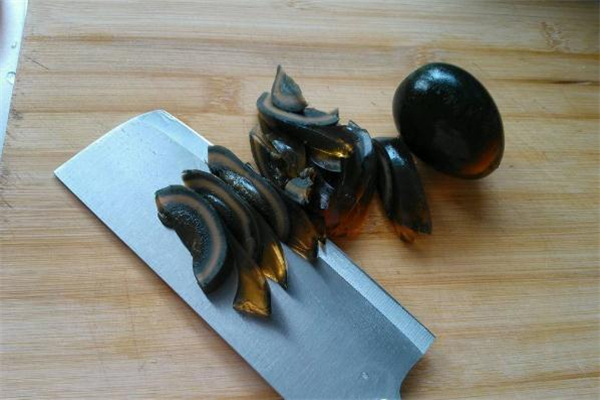 因?yàn)槠さ爸械膲A性比較大,為了中和其堿性,使其口味更好一點(diǎn),我們經(jīng)常會(huì)將醋和皮蛋拌著食用。既然如此,在切皮蛋的時(shí)候,可以將刀蘸上醋,再來(lái)切皮蛋,既可以避免蛋黃粘刀,還能將其切得整齊好看,保證衛(wèi)生的同時(shí),還可以使皮蛋的口感更好,這個(gè)方法是最好的。