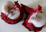 據(jù)說是泰國王妃最愛的水果。這龍宮果有不同品種,有的酸得很難吃,有的很甜,買時要小心。