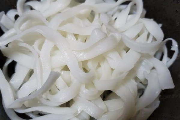 炒之前需要浸泡一下,軟了,就可以炒了。各種河粉都有各自的特點(diǎn),要一一分析,試炒一下,掌握了要領(lǐng),就可炒出美味的河粉了。