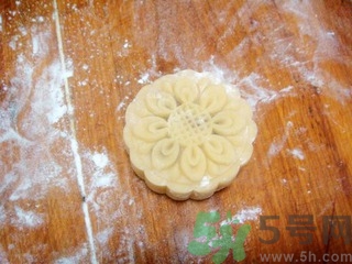 15月餅?zāi)W尤錾厦娣?,將月餅坯子按壓成型?/p>