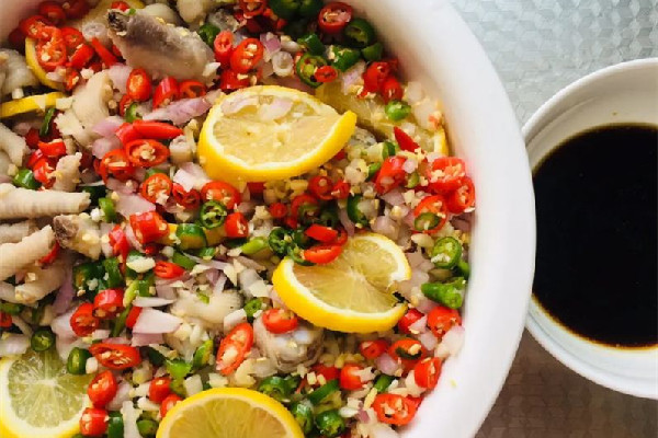 像如果將雞腳和檸檬泡在一起過久的話,檸檬中就會釋放一種檸檬苦味素,從而使得雞腳吃起來變苦。