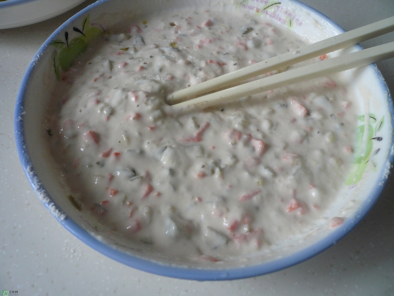 3、加水,加面粉,調成糊狀(不用加鹽,泡菜本身又咸味)。