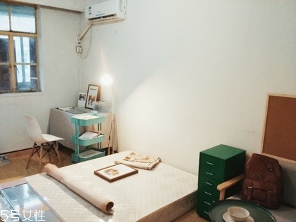床的對(duì)面原本就是辦公區(qū)域,丟掉了房東原本的辦公桌,再添置點(diǎn)新的東西進(jìn)來。