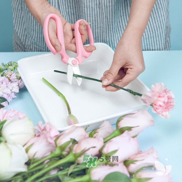 STEP 1 花桿下端45°剪去根部,這樣可以增大吸水面積哦。
