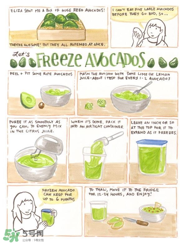 以上方法的類似版本:把牛油果泥裝進(jìn)冰盒/模具里冷凍。這個(gè)好處就是可以每次取用自己需要的量。